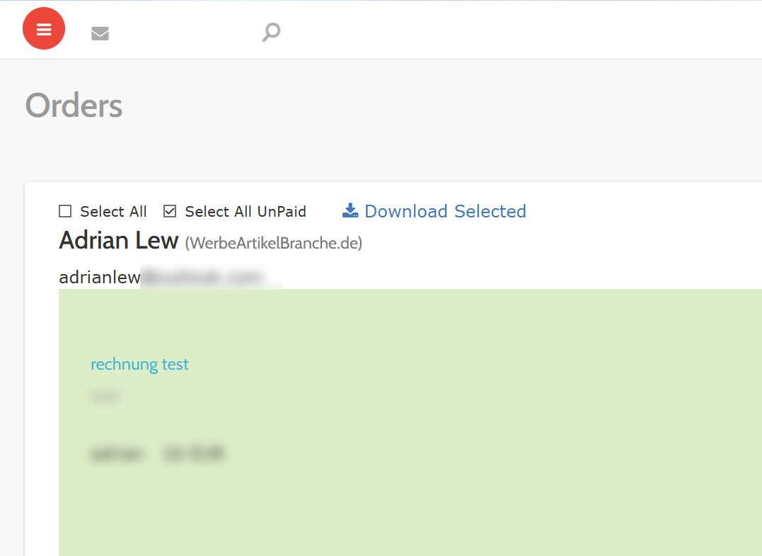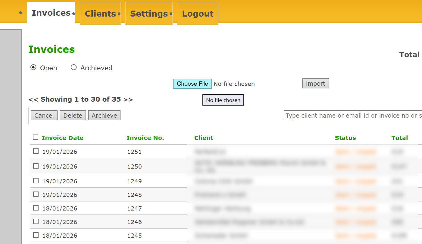 Log in to the invoicing system anytime to export all orders from your client / clients !